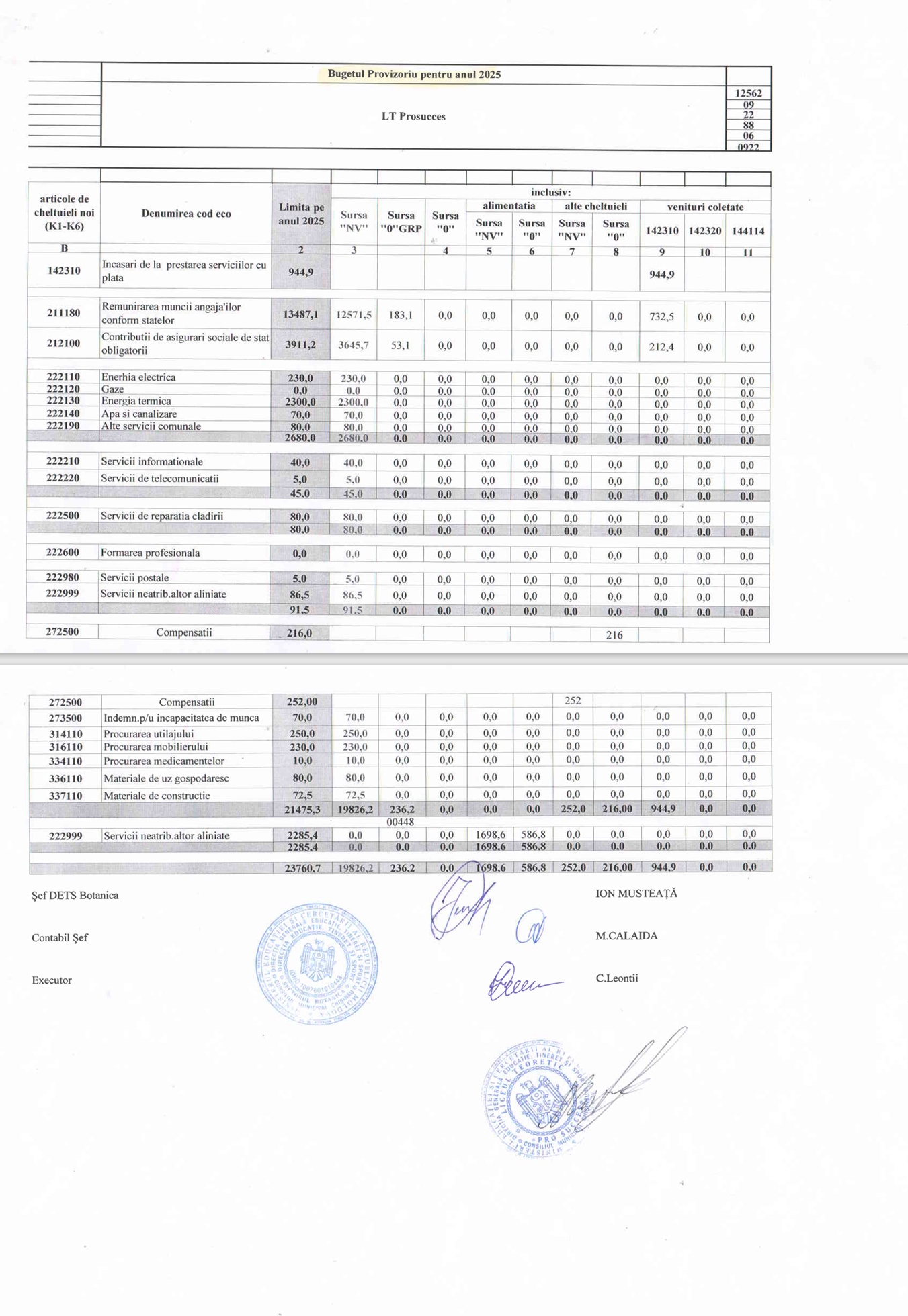 Bugetul Liceului Teoretic Pro Succes, anul 2025