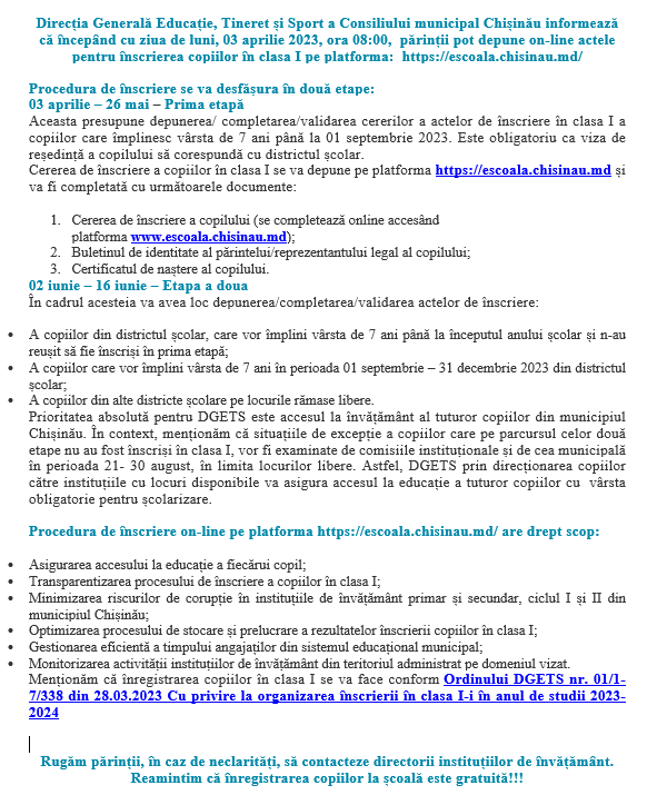 Începe procesul de admitere în învățământul liceal 2025–2026!