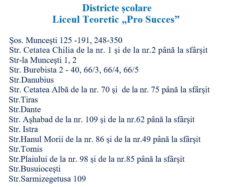 Districtele de școlarizare pentru anul de studii 2018-2019