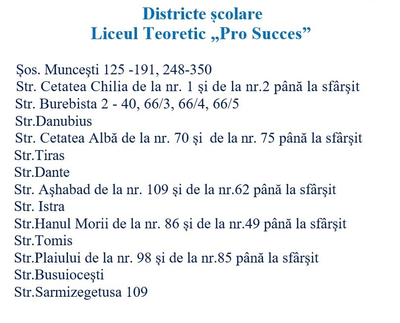 Districtele de școlarizare pentru anul de studii 2018-2019